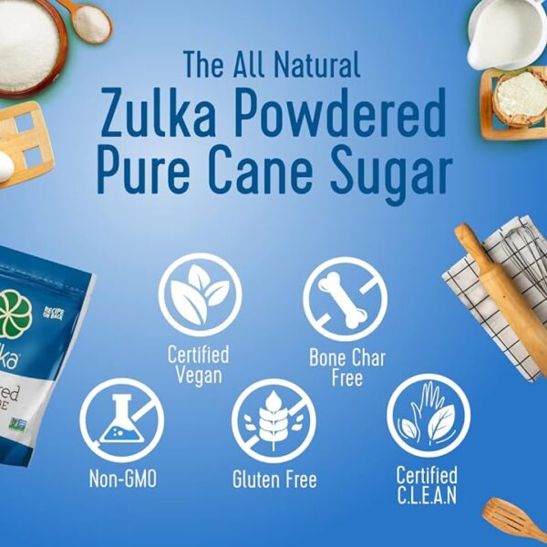 Zulka® Powdered is a Non-GMO Project- Verified pure cane sugar made by squeezing the juice from freshly harvested cane, evaporating it, then pulverizing the crystals to create an ultra-fine texture and consistency. Additionally, Zulka® Powdered sugar retains a slightly golden color similar to the color of sugar cane in its natural state. Use it any time you want a smooth or delicate finish.